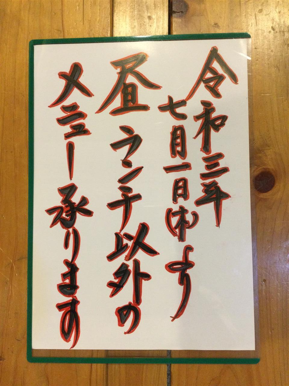 ❗️ 7月より昼も夜のメニュー ❗️