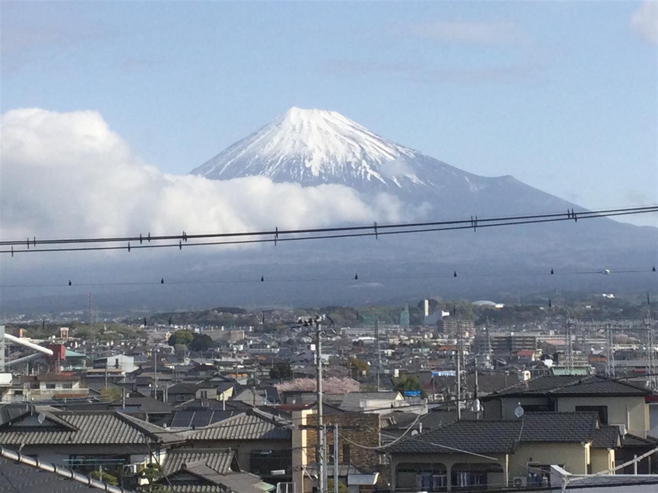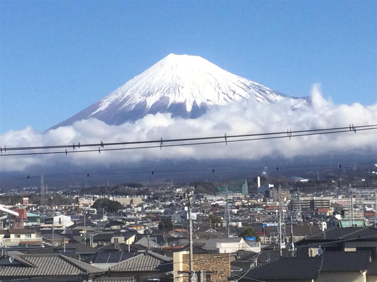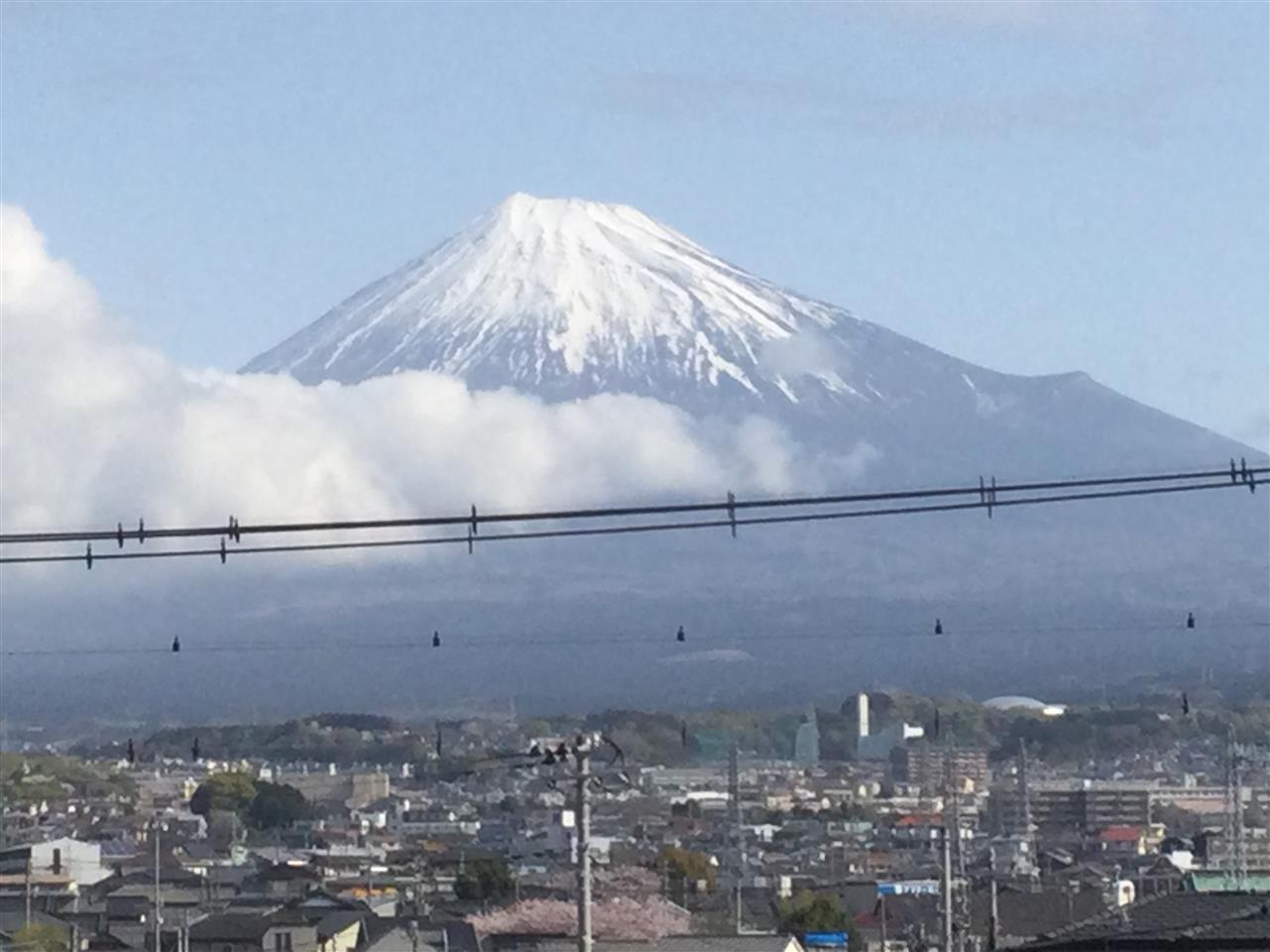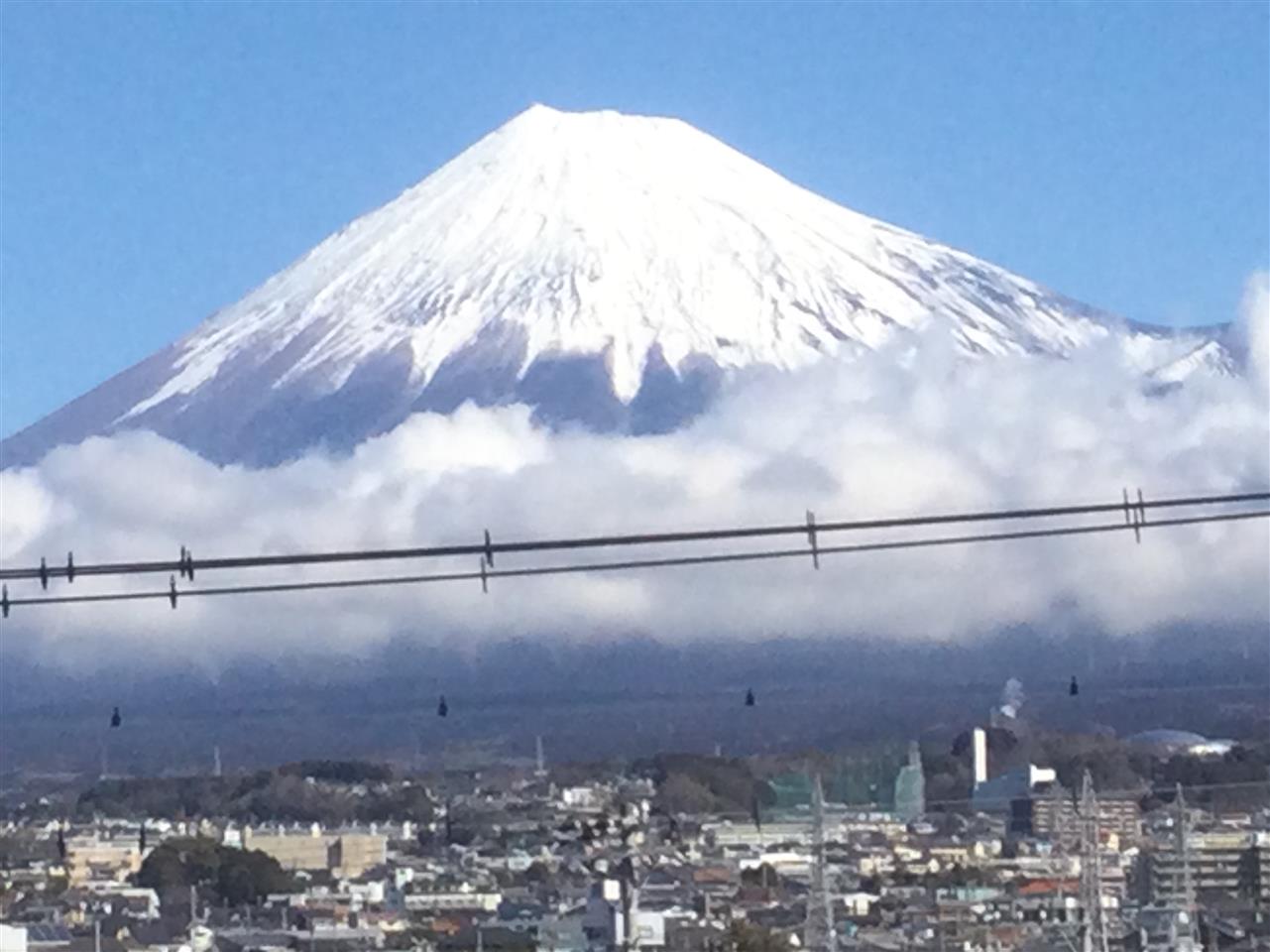 裾野に雲が有りましたが、朝一ならまだ雪化粧の富士山が見えます‼️