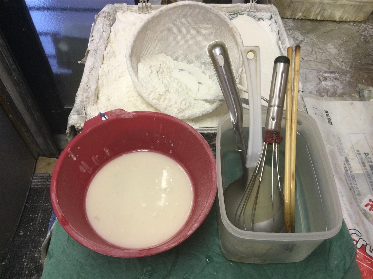 水も冷蔵庫に入れて置い、両方を溶き、